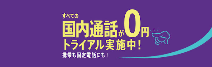 日本国内の固定電話・携帯電話への通話が全て0円で利用できるトライアルを実施しています。